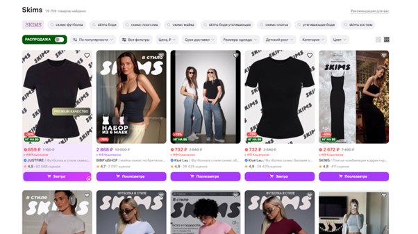 Проблема российских аналогов — отставание в технологиях производства тканей и в маркетинговой инфраструктуре. Skims инвестирует в R&D материалов и в продакшн уровня голливудских студий (партнёр «Kimsmas Live!» — OBB Media, режиссёр — лауреат Emmy). Копировать дизайн проще, чем воспроизвести экосистему.
